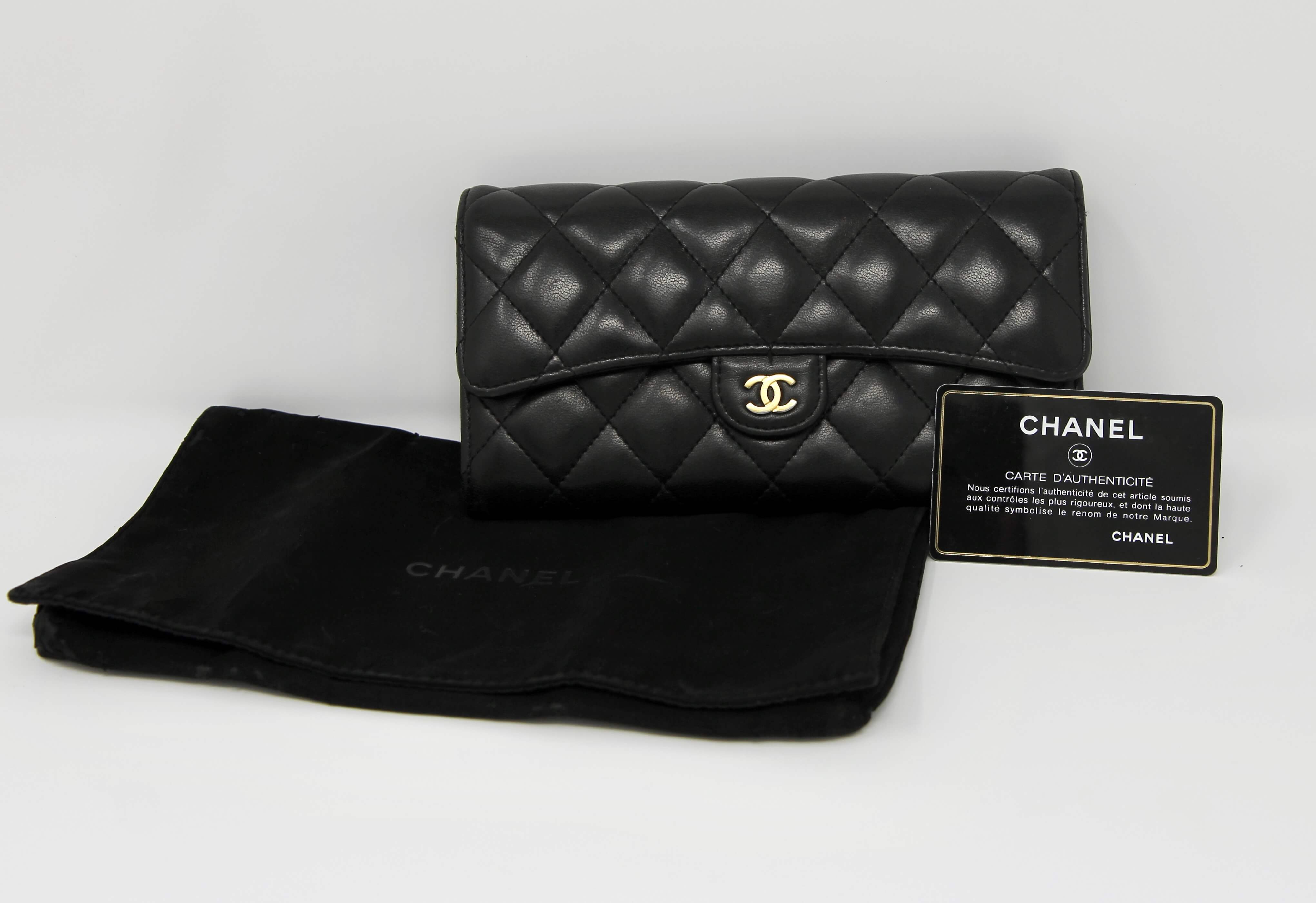 Chanel Vintage Full Flap Clutch on Chain — Black Lambskin, 24k Gold Hardware