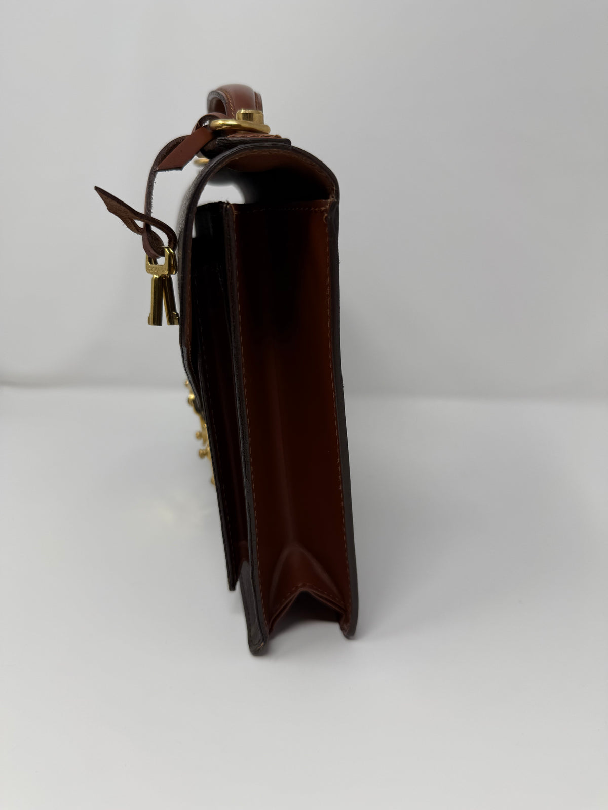 Good vintage condition with signs of wear consistent with age. No smells, damage, or obvious staining. Hardware shows surface wear and light markings from use.